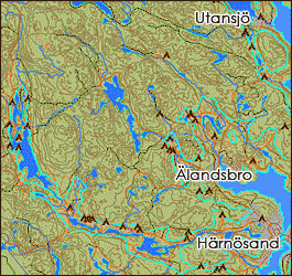 Långsjön, Gussjön Långsjön utgjorde en djup fjärd under stenåldern. Här syns strandlinjen ca 6000 år sedan och många boplatser följer tydligt denna nivå (75 m.ö.h) << Tillbaka